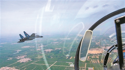 “发现目标,按攻击队形拦截!”正在某空域巡逻的长机飞行员殷凡明发现“敌”机,迅速协同僚机飞行员张玮前出拦截,一场空中战斗随即打响。