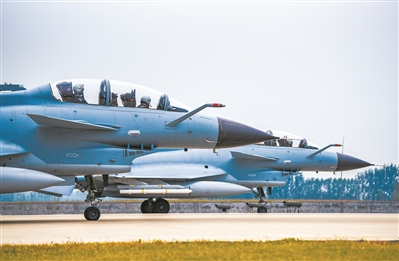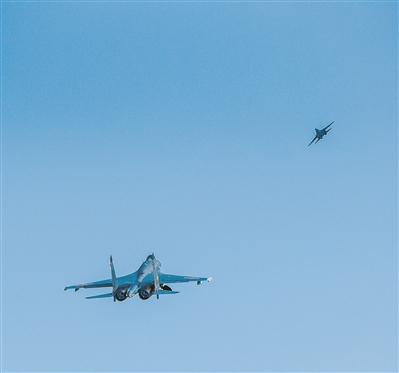晴空万里,空军航空兵某团多架战鹰呼啸而起,进行自由空战对抗演练。