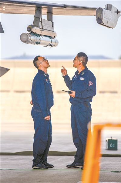 走下战机,飞行员对刚刚结束的空战对抗进行复盘交流。他们结合飞参数据和飞行视频,认真查找问题和不足,并对下一波次攻防战法展开深入研究。