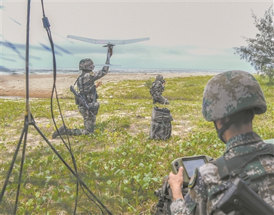 无人机侦察组快速抢占有利地形、开辟起降场、规划航线……孰料升空不久,无人侦察机突遇强风,机身摇摆不定,监视器画面模糊不清。面对险情,操作手沉着操控无人机返航,重新标定航向,成功实施空中侦察。