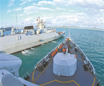 初冬时节,南海某海域波涛奔涌,战舰驰骋,南部战区海军某护卫舰支队舰艇全训合格考核正在进行。