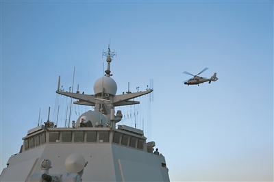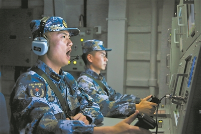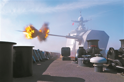 “射击!”编队指挥员一声令下,各舰主炮相继对来袭“敌”目标实施火力打击。一时间,海面炮声隆隆,硝烟弥漫。
