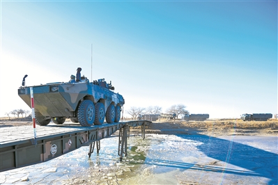“前方桥梁被毁,工兵迅速前出架桥!”远程机动途中,该旅运动保障队接到上级“敌”情通报后,迅速调集兵力在某水域展开架桥作业。工程侦察、破冰作业、标桩定线……在后方火力掩护下,工兵连快速架起一座重型机械化桥,保障后续部队车辆装备顺利抵达作战地域。