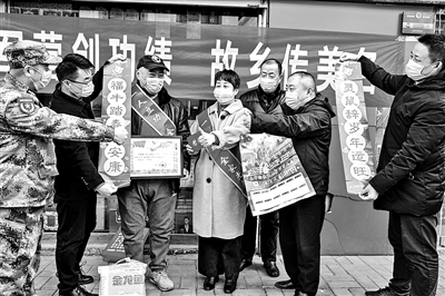 一人立功,全家光荣。1月29日,江苏省徐州市丰县人武部、退役军人事务局和丰县邮储银行负责人来到军人张琦家中,为其家人送去立功喜报、奖金、春联年画和慰问品。