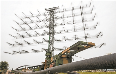 操作方舱内,各号手屏气凝神。“方位××,距离××,发现目标!”参谋人员迅速报告“敌情”。话音未落,“敌”机对地面雷达释放强电磁干扰,并伺机向阵地逼近。