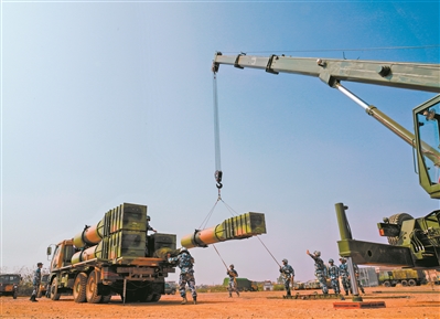 齐心协力吊装导弹。