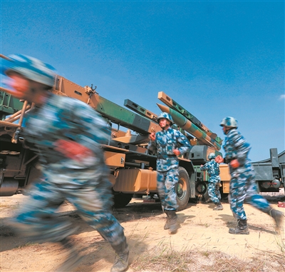 快速机动,各战斗模块顺利进驻预定阵地。车辆定位、装备架设、搜索目标……随着作战口令下达,多个操作动作连贯展开,一时间导弹起竖、雷达飞旋,部队转入一等战斗值班。