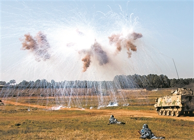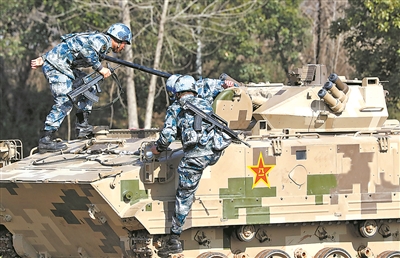 “解脱伞具,完成人装结合……”地面突击分队成功着陆后,迅速向目标发起进攻。指挥员根据战场态势,下令使用车载火力打击“敌”坚固工事。
