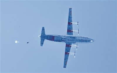 “跳!跳!”半小时后,先遣侦察分队在无气象资料、无对空标识、无地面引导条件下快速降落至预定地域,随即展开侦察,为引导后续部队空降做好准备。
