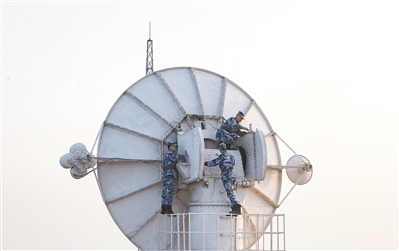 抵达山顶后,一场测控训练紧张展开,各种口令声响彻海天,官兵斗志昂扬、全心投入。