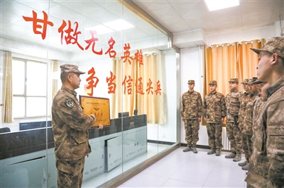 新兵们参观机房,了解红山河机务站光辉历史。