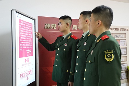 在第六个“全民国家安全教育日”到来之际,武警浙江总队杭州支队利用军营广播、流动课堂等多种载体,组织官兵学习国家安全法、反间谍法等相关法律,观看警示教育片,引导官兵树立国家安全观念。图为官兵借助流动课堂学习国家安全法律常识。