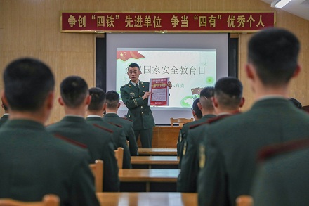 图为部队开展“全民国家安全教育日”专题授课。胡港 摄