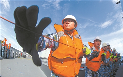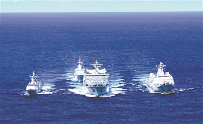 正当补给紧张进行之时,编队突然接到演练通报:补给海区“敌情”威胁增大。按照预案,编队各舰迅速撤出补给阵位,组成战斗队形。一道道指令从指挥舰作战室内下达至各舰船,各战位官兵严密侦搜编队周边海空域……
