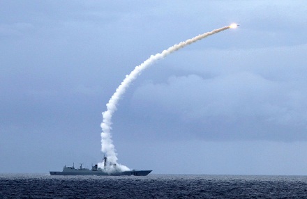 海口舰发射对空导弹拦截目标。李章龙 摄