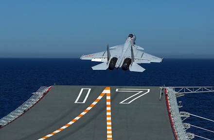 歼-15舰载战斗机从山东舰起飞。李刚 摄
