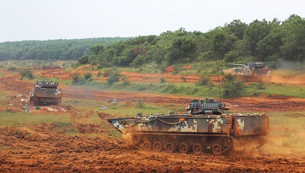 海军陆战队步坦协同夺取纵深阵地。余文强 摄