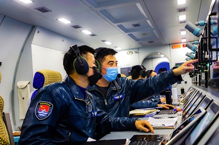 这两天,驻守南海前哨的海军航空兵某机场战鹰列阵、轰鸣长啸,从清晨到后半夜,一架架反潜巡逻机、预警机压茬起飞,抓住海空情况复杂的练兵良机,不断向更远空域、更难科目、更险战场振翅翱翔。