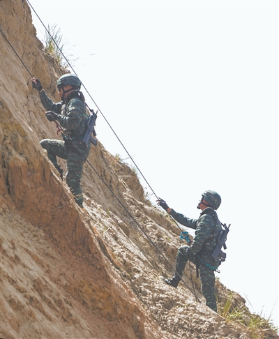 攀爬山崖围剿“暴恐分子”。