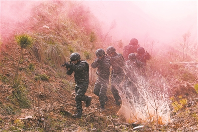 铁拳出击,攻势凌厉。官兵爬陡坡、穿密林、涉水沟,将包围圈不断缩小。“暴恐分子”被围于一隅后,突然实施火力反抗,企图乘乱逃窜。按照行动预案,官兵迅速应对,从不同方向展开围堵,最终将“暴恐分子”悉数抓捕。