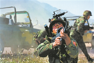 特种作战士兵使用数字化装备进行“敌”后破袭作战。