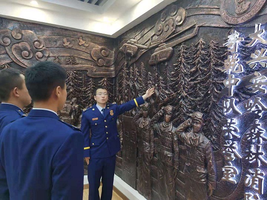 翠绿的大森林、庄重的火焰蓝、鲜红的党旗,在祖国北疆构成了一幅亮丽风景线。