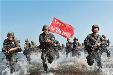 陆军某部王杰生前所在连官兵传承“两不怕”精神,在海训场刻苦锤炼打赢本领。赖桥泉 摄