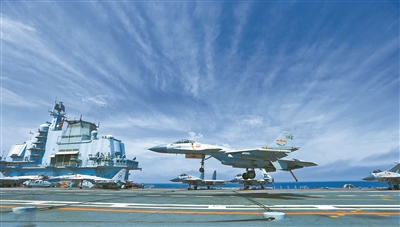 2018年4月12日,辽宁舰航母编队参加南海大阅兵之后,随即奔赴远海,开展实兵对抗演练。图为演练中歼-15舰载战斗机放下尾钩准备着舰。本报记者 张雷 摄