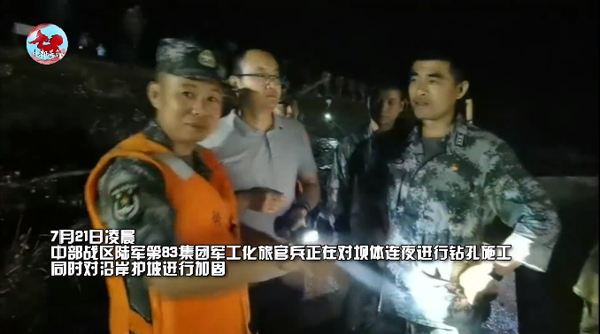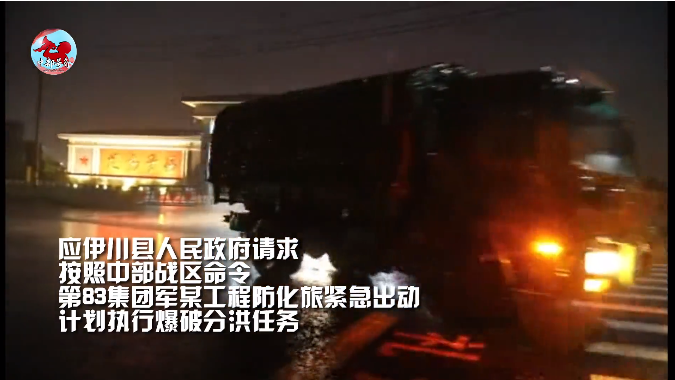 20日凌晨,河南省洛阳市伊川县平等乡马回营村伊河拦水坝出现险情。按照中部战区命令,第83集团军某工程防化旅立即启动预案,炸药、雷管、救生舟艇等爆破和防洪器材紧急装车,75名官兵、15台装备车辆在最短时间内集结完毕,火速驰援洛阳市伊川县任务区,执行爆破分洪任务。