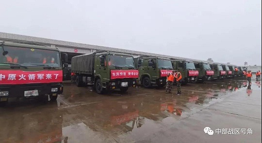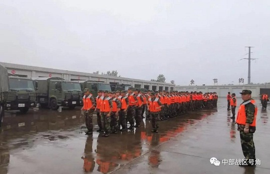 21日上午,根据中部战区命令,驻豫火箭军某部派出200名官兵,携带12艘皮划艇、1000多件救生衣、500多个锹和镐等必要救生器材,奔赴郑州市。