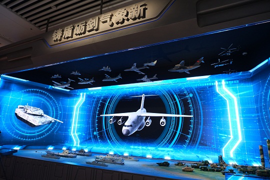 图为景观《铸盾砺剑气象新》,展示了人民军队新型武器装备。韩潇 摄