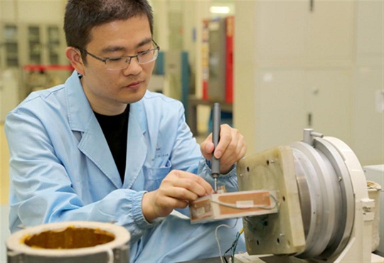 图为技术人员正在安装待标定的加速度计。航天科工供图