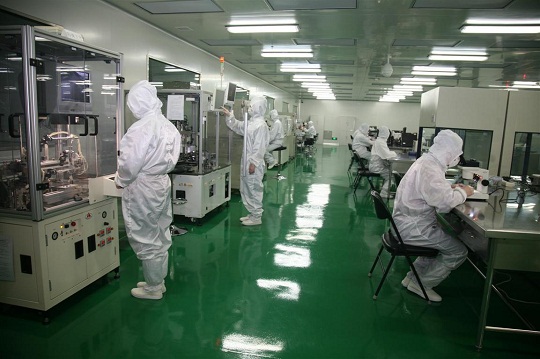 图为航天科工203所晶体元器件技能人员正在千级超净间开展生产作业。 航天科工供图