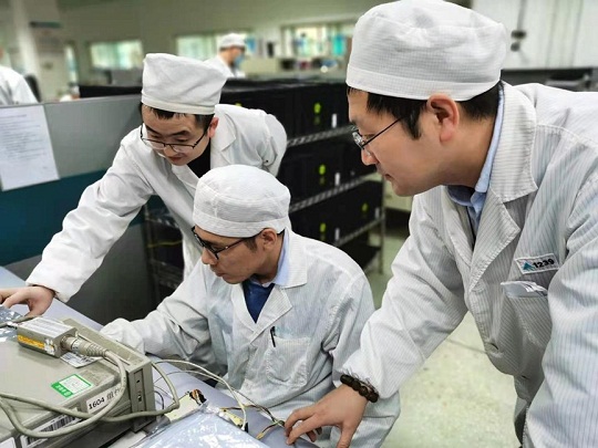 图为科研团队在半刚性太阳电池阵生产现场。尹冬宁 摄