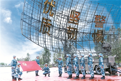 谈心谈话,凝聚起连队建设向心力。图为演训间隙,雷达站党支部组织向党旗宣誓活动。 邵晨阳 摄