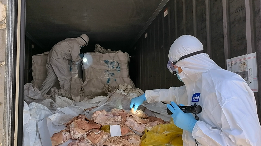 图为阳江海警局查获案值6000余万元的走私冻品。广东海警局 供图