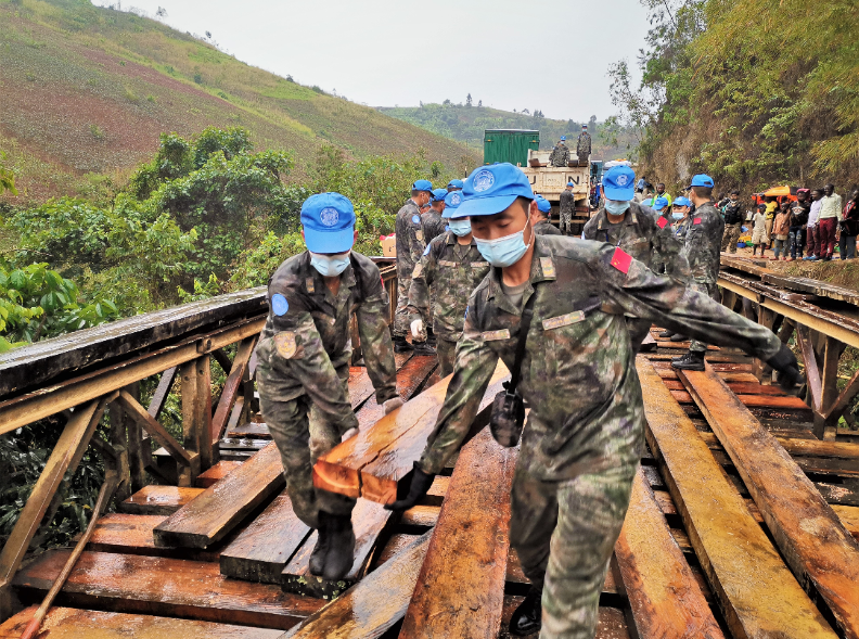 中国第24批赴刚果(金)维和部队由工兵、医疗两支分队组成,自去年9月轮换部署一年来,积极应对多重考验,出色完成道路修复、桥梁抢修、人道主义救援、卫生防疫等任务。两支分队以杰出的工作成绩,受到联合国刚果(金)稳定特派团和当地政府高度评价。归国前,218名官兵均被授予联合国“和平勋章”,表彰他们为维护世界和平作出的贡献。