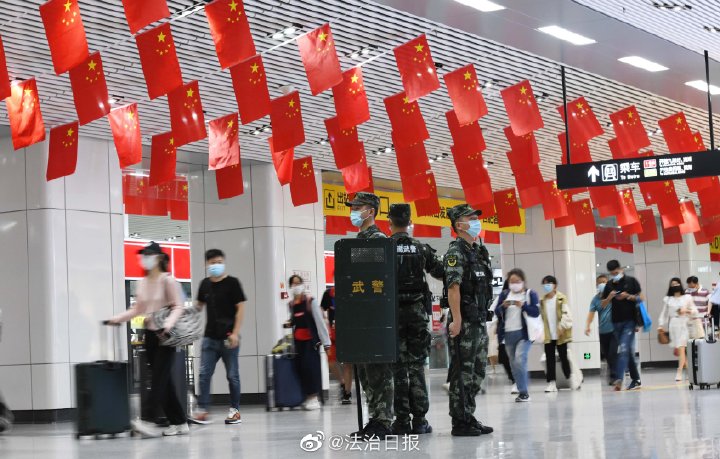 今天是国庆节,为确保群众出行安全,武警安徽总队合肥支队官兵在合肥南站巡逻执勤。据了解,国庆节期间,武警合肥支队广大官兵坚守执勤一线,守护一方安宁,在各自的工作岗位上为祖国母亲庆生。