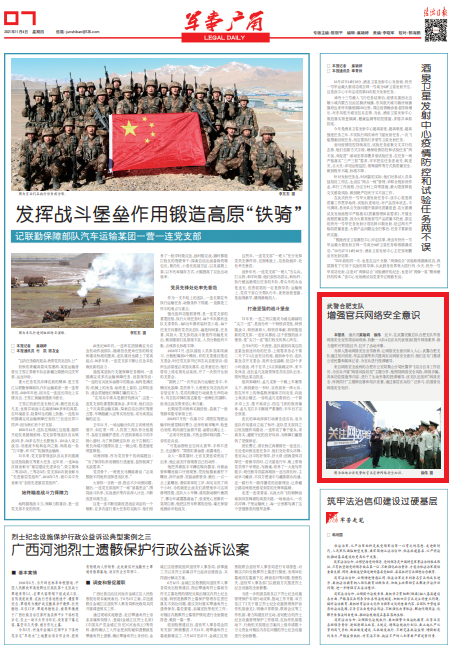 为深入推动网络安全宣传教育,让网络安全意识深入人心,武警合肥支队通过知识讲座、作品巡展等形式提高官兵网络安全意识。他们还专门邀请公安民警和媒体记者,为官兵进行授课辅导。