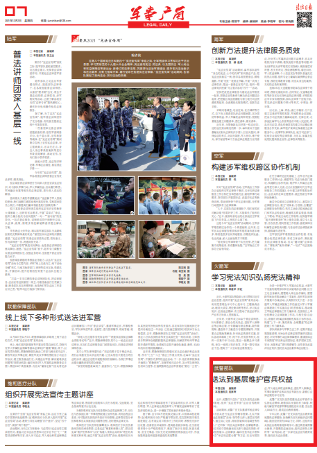 今年以来,武警广安支队依托法治教育基地提供法律援助,协助解决官兵家庭涉法问题8起,挽回经济损失100余万元。同时,还组织官兵到法治教育基地参观学习,通过典型案例警示教育、开展模拟法庭活动、组织法律热点辨析等一系列活动,进一步深化宪法宣传教育效果,强化官兵法治思维。