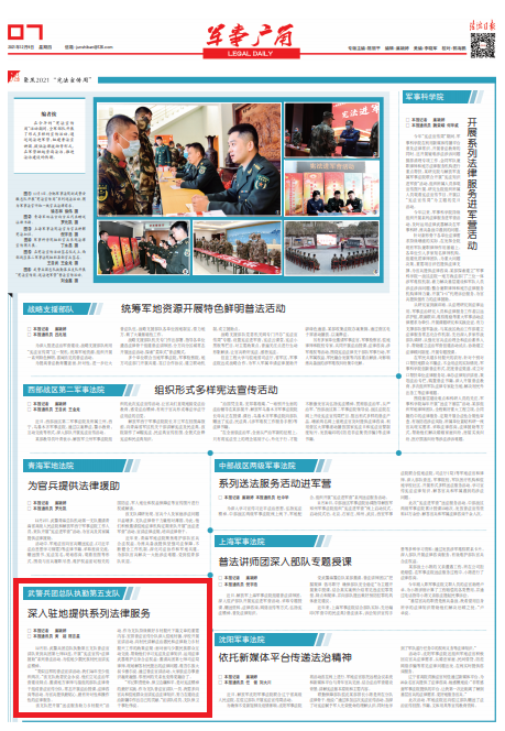 “类似这样的普法宣讲活动,我们每年至少组织两次。”该支队政委安会永说,他们立足法治军营建设特点,邀请地方律师与抽组的部队法律骨干组成普法宣传分队,常态开展法治授课、法律咨询等活动,为官兵提供最贴心、最有针对性和操作性的法律服务。