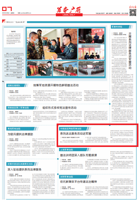 为深入学习宣传习近平法治思想,弘扬宪法精神,中部战区两级军事法院线上线下、军地配合,组织开展“宪法进军营”系列送法服务活动。