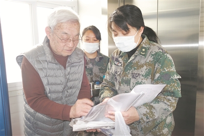 该所工作人员为老干部介绍健康知识。刘国兵 摄
