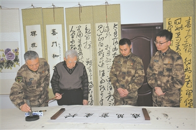 活动现场,女生独唱《莫斯科郊外的晚上》、诗朗诵《奋进一流谱新篇》……一个个军地联合自编自演的节目受到欢迎。洛阳市书画院的书法爱好者现场挥毫泼墨,多种书体各显神韵。老干部、老阿姨拿着一副副寓意深刻、饱含祝福的春联、“福”字,喜笑颜开。