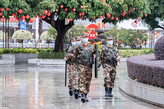 新春佳节万家团圆之际,武警广西总队北海支队官兵始终坚守执勤一线,在驻地市中心广场、车站等人员密集场所与重要交通枢纽开展全天候巡逻执勤,为春节假期驻地人民群众和来往旅客的平安保驾护航。