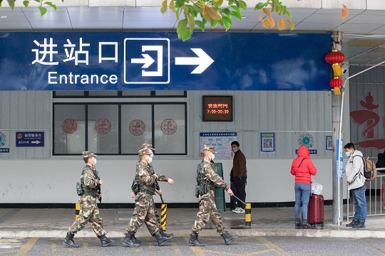 图为武警官兵在车站巡逻执勤。梁承杰 余海洋 摄