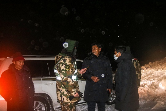 因灾害现场地处平均海拔4000多米以上海拔,持续降雪不断,加之气温低至零下20多摄氏度,给整个道路抢通工作带来了不少难度。为尽快清理路面积雪抢通道路,武警官兵采取“人歇机不停、分段抢通、先通后拓”的方法进行全力抢通,克服了高寒缺氧及紫外线强烈等重重困难。