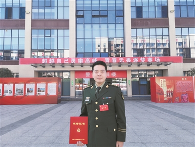 去年10月,武警部队优秀政治教员比武火热展开。前一阶段,佘冬雪由于发挥失常,成绩险些跌出前十名。他心里十分焦虑,鼓励自己继续加油:“支队深入学习贯彻习近平强军思想,统筹推进各项工作取得新成效。我作为支队代表参加比赛,如果遇到困难就退缩,就永远战胜不了困难。”