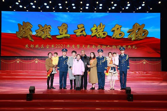 1月13日,东部战区空军举行第九届“擎天东南感动人物”颁奖典礼,当3位军嫂作为感动人物在丈夫的陪伴下登上领奖台时,台下掌声雷动。