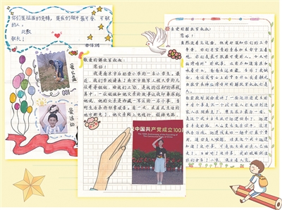 图①:南京市后标营小学学生写给梧桐沟边防连官兵的信。杨磊 设计制作